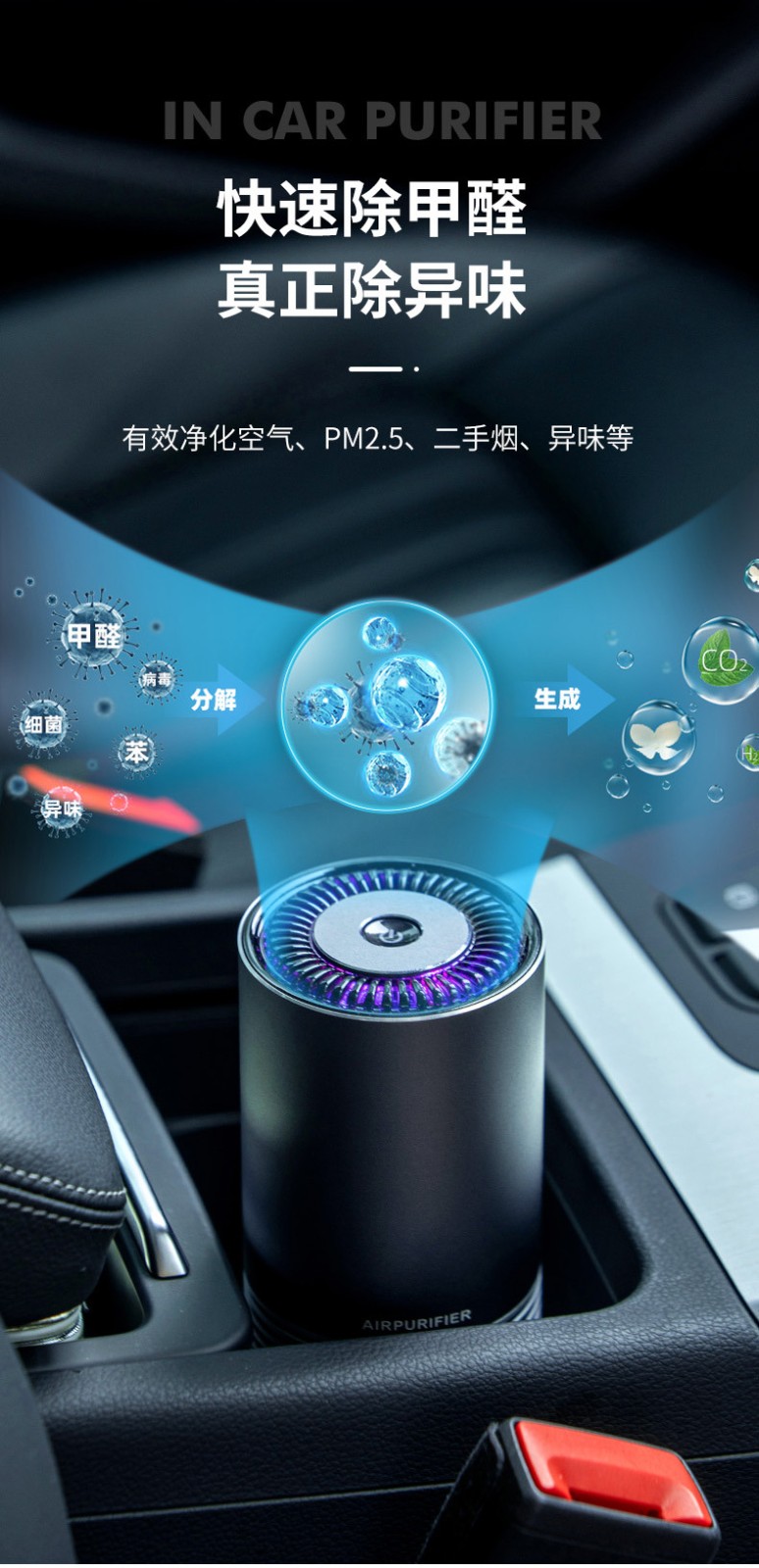 除了凈化原理外,對(duì)于一款合格甚至優(yōu)質(zhì)的車載空氣凈化器來(lái)說(shuō),它的凈化功能也是重要的指標(biāo),這其中主要包括凈化速度和在最大功率下的分貝。先說(shuō)下凈化速度為什么很重要,因?yàn)榇蟛糠周囍髟诖蠖记闆r下都是短途出行,一般開車時(shí)間也都在1-3小時(shí)以內(nèi),那么是否能短時(shí)間內(nèi)將車內(nèi)空氣凈化干凈顯得極其重要。不然的話,車主從開車到停車最后離開車了,空氣凈化都還沒完成,那買個(gè)車載凈化器的意義在哪呢?所以,對(duì)于車載凈化器來(lái)說(shuō),凈化器顯得非常重要,在當(dāng)前車載凈化器的凈化速度來(lái)說(shuō),3分鐘完成全車空氣換新,7600轉(zhuǎn)/每分鐘算是比較優(yōu)秀的凈化速度;另外在分貝這塊,建議選擇DB值在正常檔位低于30、最高檔次低于50,如果DB值大于60DB以上那給人在車內(nèi)的體驗(yàn)就很不好了。